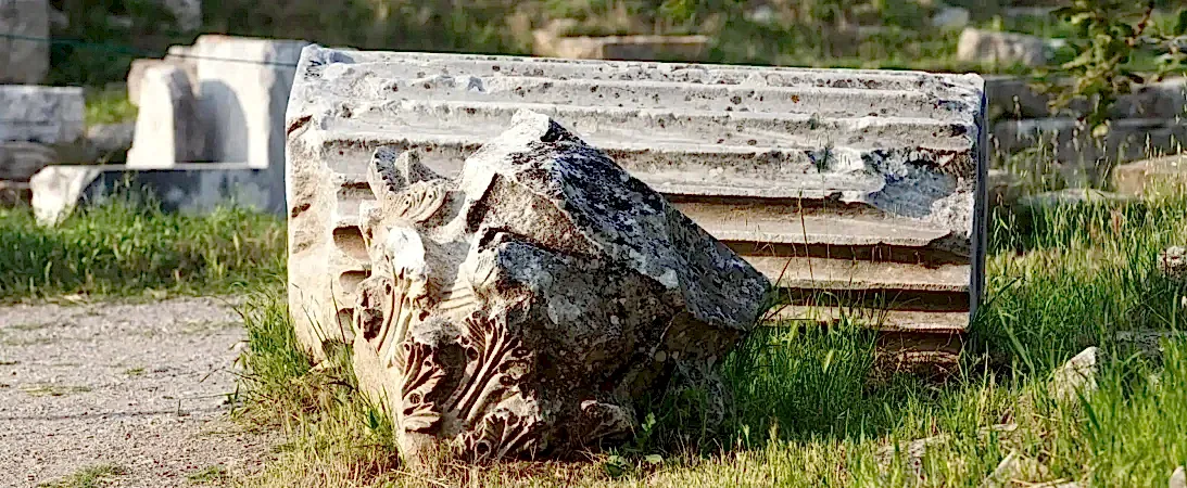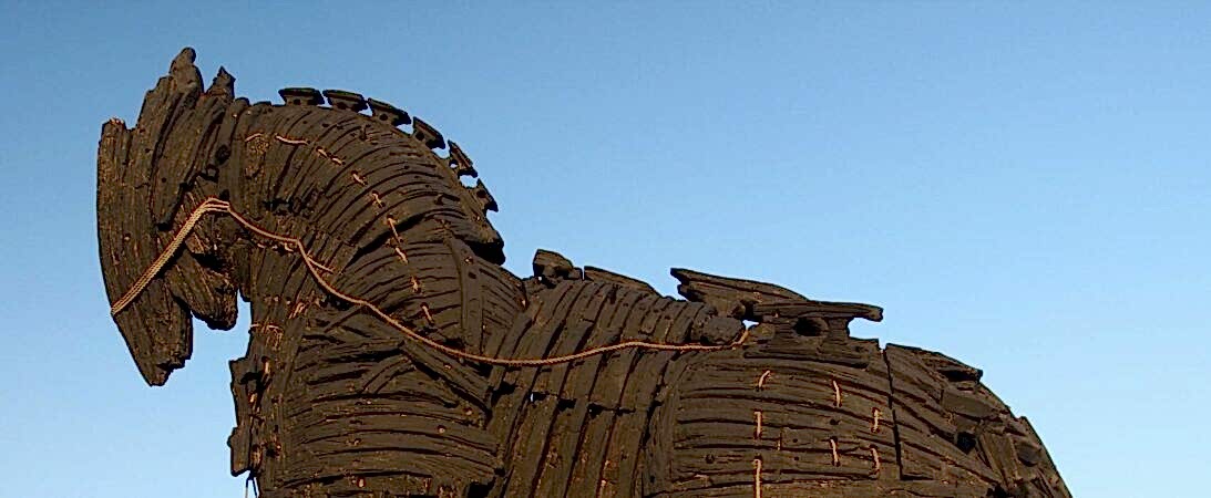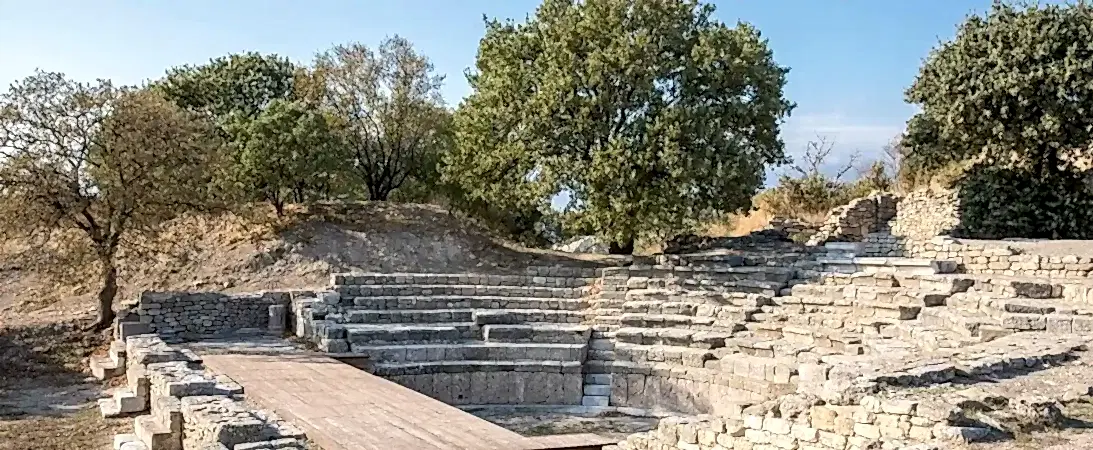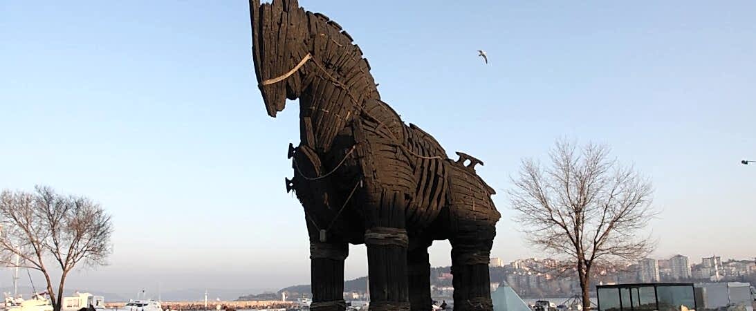 Troy: Replica of the Trojan Horse, fortification walls of Troy VI, Temple of Athena, entrance ramp to Troy II, Odeon.